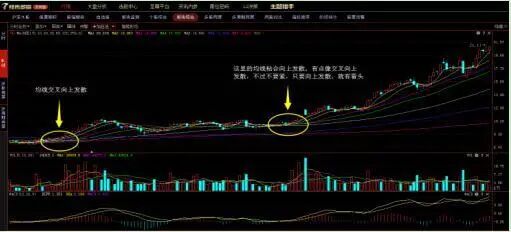 1、均线向上发散必须拉出大阳线或者第二天跳空高开高走。