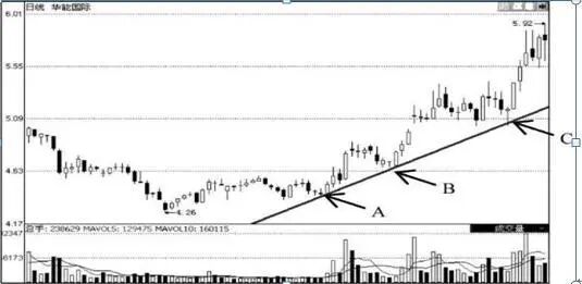 上升趋势线揭示了股价或指数的运行趋势是向上的,它对股价或指数的上升具有支持作用,因而又被称为“上升支撑线”