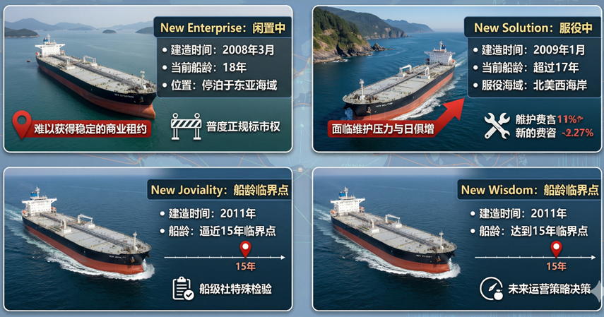 有4艘船舶的建造年份在2011年或更早,意味着它们在2026年已经达到或超过了15年的船龄红线。