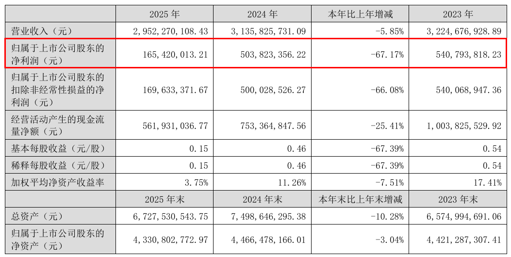 3月25日,益生股份发布2025年年度报告,报告期内,公司实现营业收入29.52亿元,实现归母净利润1.65亿元,同比减少67.17%,全年业绩阶段性承压,主要系上半年白羽肉鸡行业供需错配导致的行业景气度低迷影响。