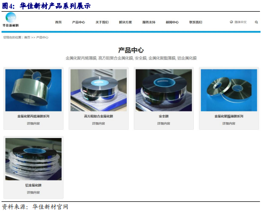 同时,华佳新材在特高压柔性直流输电等关键前沿领域的产品开发和业务布局 成效亦显著,正在与诸多代表性客户进行深度合作开发,有望逐步打破国外厂商的 技术壁垒并实现国产化替代。在技术创新上,华佳新材正在重点研发双面镀金属化薄膜产品,未来量产后,相较于当前产品有望显著降低成本并提升性能,促进薄膜 电容器产业发展升级。