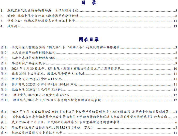 政策汇总及北交所并购新动态:本双周新增 1 起