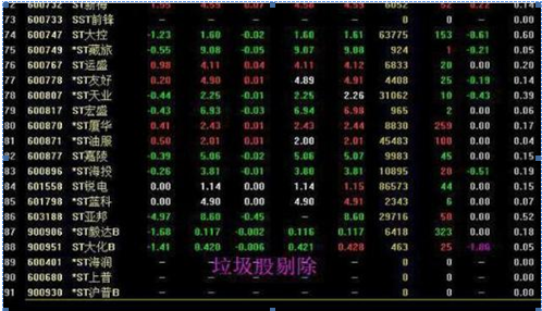 首先最为明显的就是被带帽的ST股,存在退市风险股,91只垃圾股剔除,