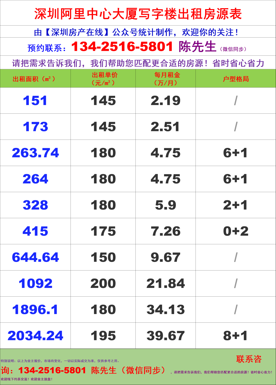 深圳阿里中心大厦写字楼办公室租金价格表