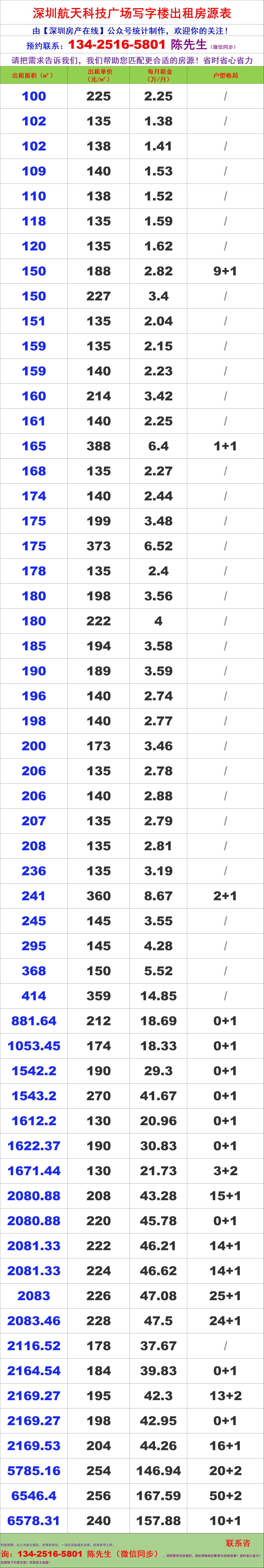 深圳航天科技广场写字楼办公室租金价格表