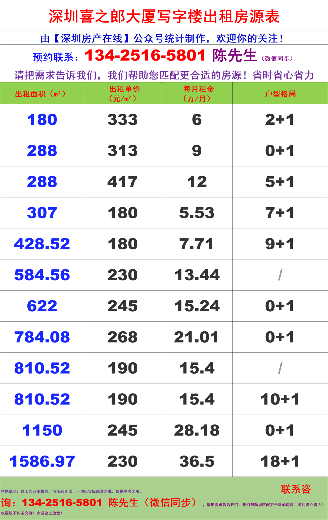 深圳喜之郎大厦写字楼办公室租金价格表