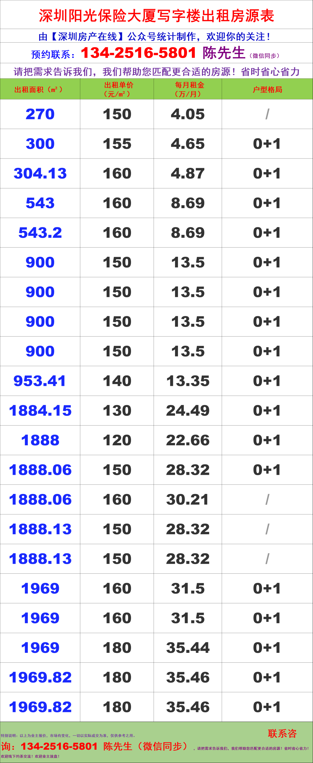 深圳阳光保险大厦写字楼办公室租金价格表