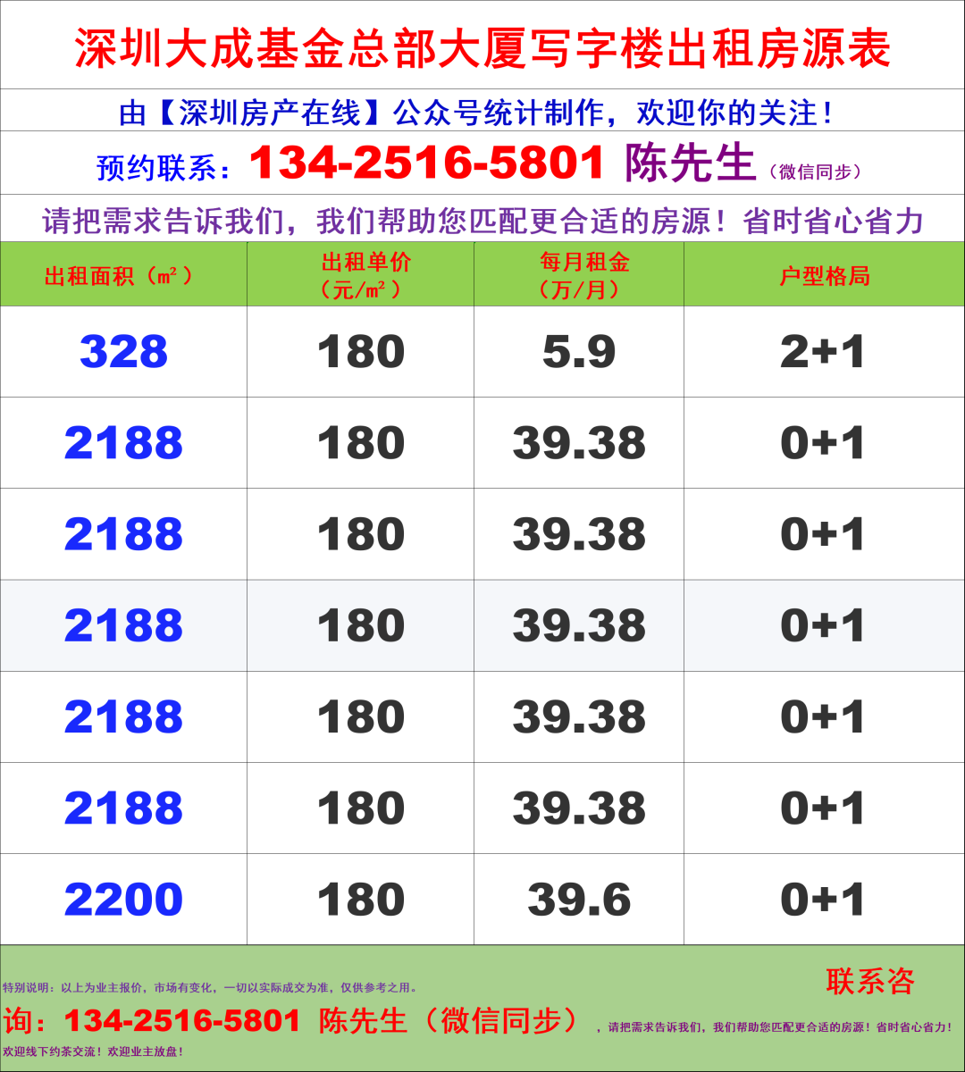 大成基金总部大厦深圳写字楼办公室租金价格表
