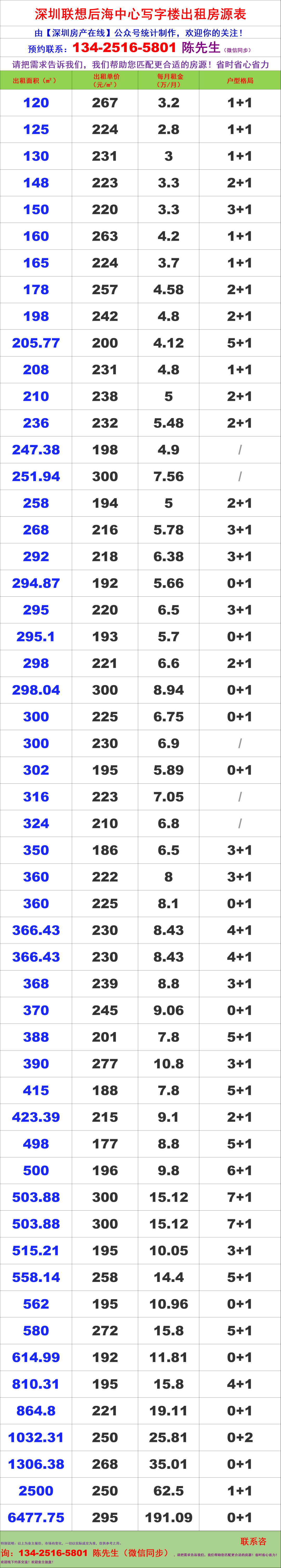 深圳联想后海中心写字楼办公室租金价格表
