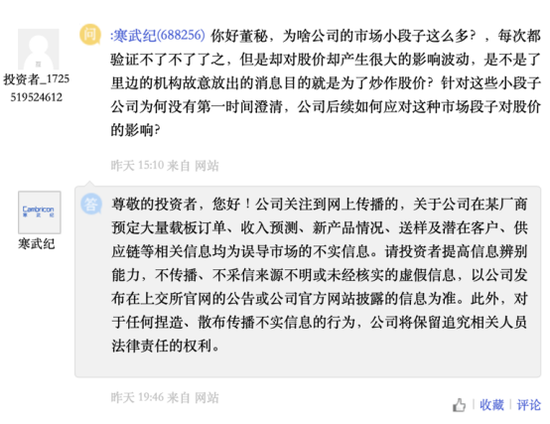 当然,在8月12日晚间,寒武纪在互动平台表示,公司关注到网上传播的,关于公司在某厂商预定大量载板订单、收入预测、新产品情况、送样及潜在客户、供应链等相关信息均为误导市场的不实信息。