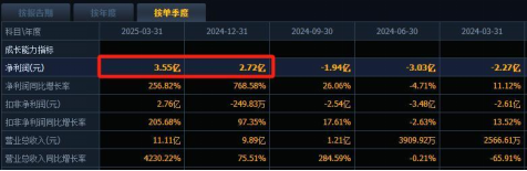 直到2025年一季度,营业收入11.11亿元,同比暴增42.3倍;净利润3.55亿元,首次实现季度盈利。