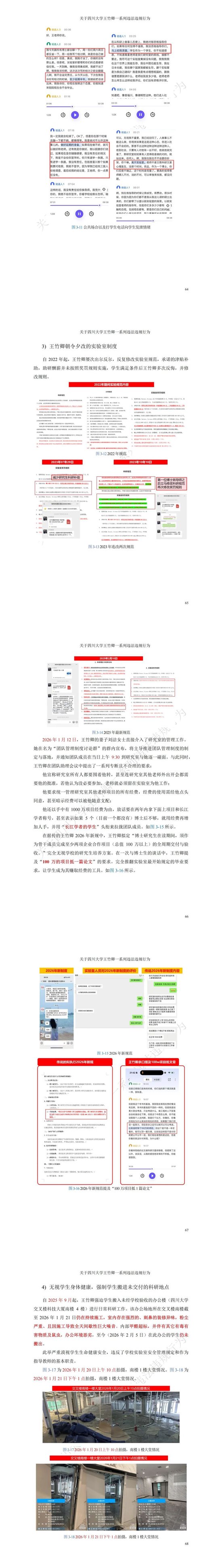 我们是四川大学wang姓究员课题组的在校博士和硕士研究生,我们以联合举b的方式,如实反映w的诸多不当行为,期待予以明察并给予公开合理解决方案。