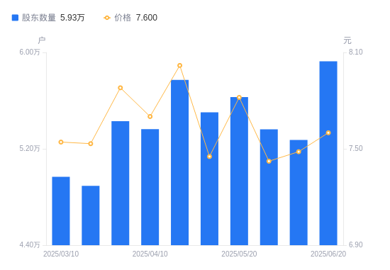 近一年(2024年6月20日至2025年6月20日),鲁北化工A股股东户数从5.91万户,增加至5.93万户,增幅0.31%,区间股价上涨16.00%。