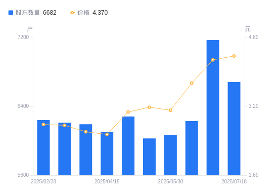 近一年(2024年7月19日至2025年7月18日),ST雪发A股股东户数从6066户,增加至6682户,增幅10.15%,区间股价上涨42.81%。