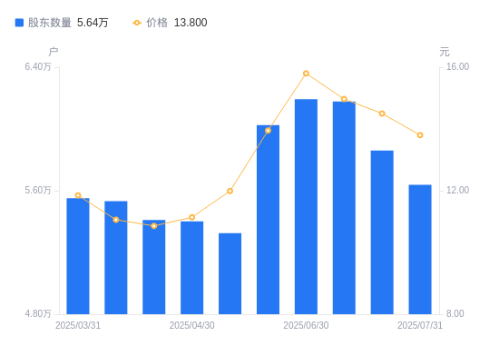 近一年(2024年8月9日至2025年7月31日),兆日科技A股股东户数从3.54万户,增加至5.64万户,增幅59.09%,区间股价上涨208.72%。