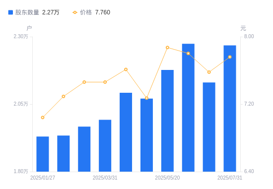 近一年(2024年7月31日至2025年7月31日),溢多利A股股东户数从2.81万户,减低至2.27万户,降幅19.32%,区间股价上涨24.32%。