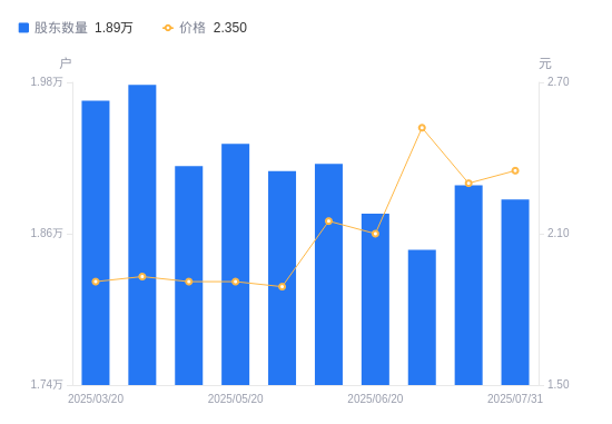 近一年(2024年8月30日至2025年7月31日),ST长方A股股东户数从2.17万户,减低至1.89万户,降幅13.05%,区间股价上涨85.04%。