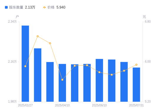 近一年(2024年7月31日至2025年7月31日),ST先河A股股东户数从3.2万户,减低至2.13万户,降幅33.27%,区间股价上涨38.79%。