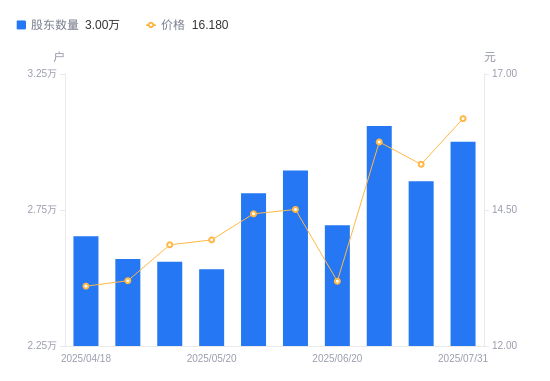 近一年(2024年7月19日至2025年7月18日),泰永长征A股股东户数从2.45万户,增加至2.86万户,增幅16.63%,区间股价上涨48.64%。