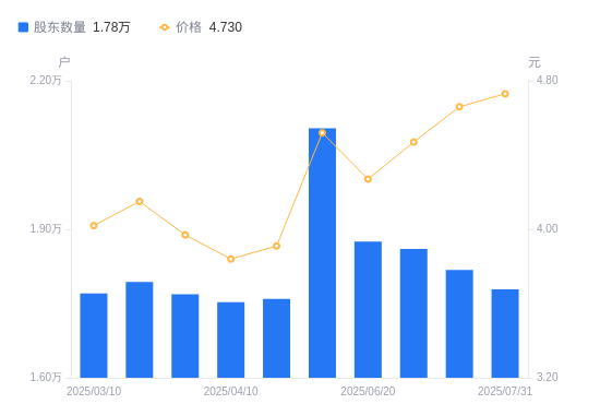 近一年(2024年9月30日至2025年7月31日),联泰环保A股股东户数从1.88万户,减低至1.78万户,降幅5.25%,区间股价上涨35.14%。