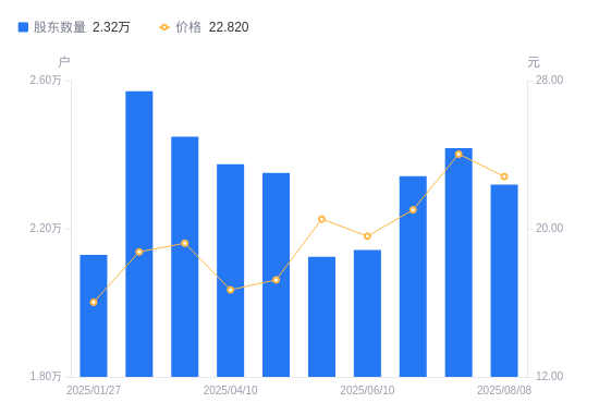 近一年(2024年8月9日至2025年8月8日),迅游科技A股股东户数从2.14万户,增加至2.32万户,增幅8.24%,区间股价上涨76.63%。