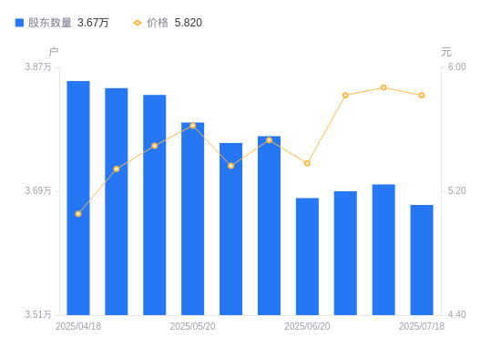 近一年(2024年7月31日至2025年7月31日),新朋股份A股股东户数从3.78万户,减低至3.6万户,降幅4.76%,区间股价上涨30.79%。