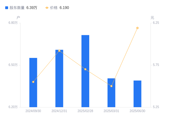 近一年(2024年6月30日至2025年6月30日),敦煌种业A股股东户数从6.76万户,减低至6.39万户,降幅5.51%,区间股价上涨29.77%。