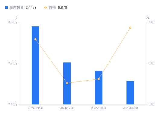 8月14日消息,数据显示,截至2025年6月30日,阳普医疗A股股东总户数为2.44万户,较上期(2025年3月31日)减少1492户,降幅5.76%。公司最新A股总股本为3.09亿股,其中流通A股2.6亿股,户均持有流通A股数量为1.06万股,较上期增加613.02股,增幅6.11%;户均持流通A股市值7.31万元,较上期增加1.68万元,增幅29.71%。