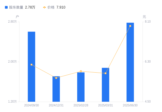 近一年(2024年6月30日至2025年6月30日),金明精机A股股东户数从1.94万户,增加至2.78万户,增幅43.41%,区间股价上涨78.56%。