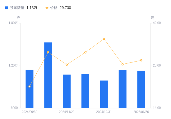 近一年(2024年6月30日至2025年6月30日),新宏泰A股股东户数从1.1万户,增加至1.13万户,增幅2.16%,区间股价上涨98.37%。