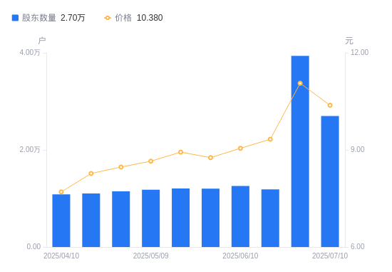 近一年(2024年6月30日至2025年6月30日),新通联A股股东户数从1.21万户,增加至3.94万户,增幅224.94%,区间股价上涨53.57%。
