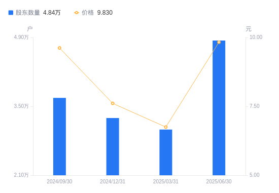 8月15日消息,数据显示,截至2025年6月30日,天晟新材A股股东总户数为4.84万户,较上期(2025年3月31日)增加1.81万户,增幅59.63%。公司最新A股总股本为3.26亿股,其中流通A股3.02亿股,户均持有流通A股数量为6237.95股,较上期减少3720股,降幅37.36%;户均持流通A股市值6.13万元,较上期减少5897.12元,降幅8.77%。