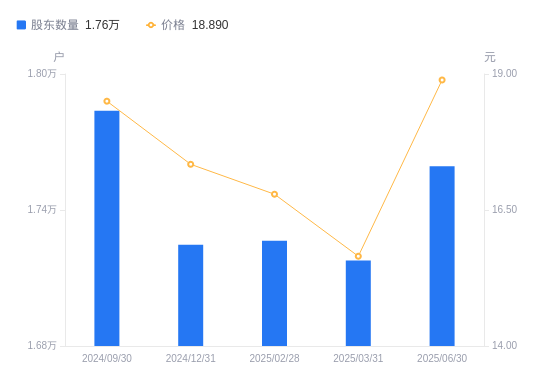 近一年(2024年6月30日至2025年6月30日),华宝股份A股股东户数从1.86万户,减低至1.76万户,降幅5.67%,区间股价上涨25.35%。
