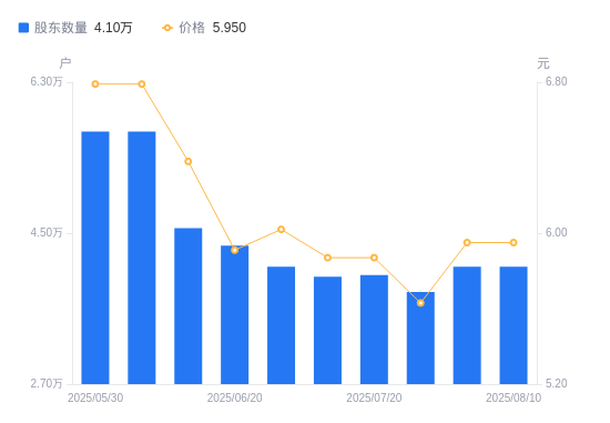 近一年(2024年7月31日至2025年7月31日),明牌珠宝A股股东户数从2.42万户,增加至3.8万户,增幅57.02%,区间股价上涨41.81%。