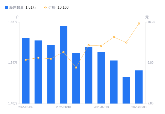 近一年(2024年8月9日至2025年8月8日),泰瑞机器A股股东户数从1.87万户,减低至1.51万户,降幅18.99%,区间股价上涨29.43%。