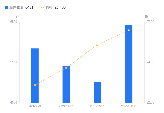 近一年(2024年6月30日至2025年6月30日),威尔药业A股股东户数从5682户,增加至6431户,增幅13.18%,区间股价上涨33.33%。