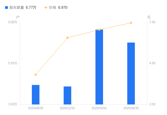 近一年(2024年6月30日至2025年6月30日),顺钠股份A股股东户数从4.27万户,增加至6.77万户,增幅58.34%,区间股价上涨111.85%。