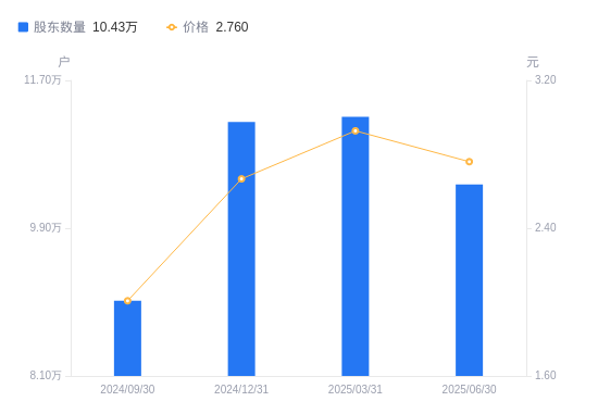 近一年(2024年6月30日至2025年6月30日),文峰股份A股股东户数从9.11万户,增加至10.43万户,增幅14.47%,区间股价上涨74.68%。