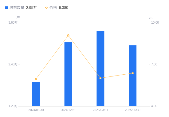近一年(2024年6月30日至2025年6月30日),友好集团A股股东户数从1.43万户,增加至2.95万户,增幅106.77%,区间股价上涨64.01%。