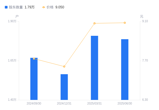 近一年(2024年6月30日至2025年6月30日),法兰泰克A股股东户数从1.5万户,增加至1.79万户,增幅19.04%,区间股价上涨36.30%。