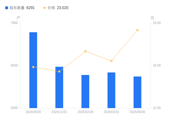 近一年(2024年6月30日至2025年6月30日),泰祥股份A股股东户数从7481户,减低至6291户,降幅15.91%,区间股价上涨35.33%。