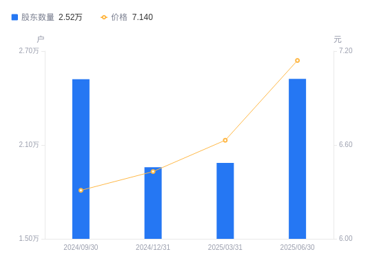 近一年(2024年6月30日至2025年6月30日),郴电国际A股股东户数从2.89万户,减低至2.52万户,降幅12.81%,区间股价上涨30.29%。