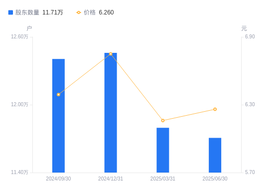 近一年(2024年6月30日至2025年6月30日),农发种业A股股东户数从12.83万户,减低至11.71万户,降幅8.74%,区间股价上涨11.99%。