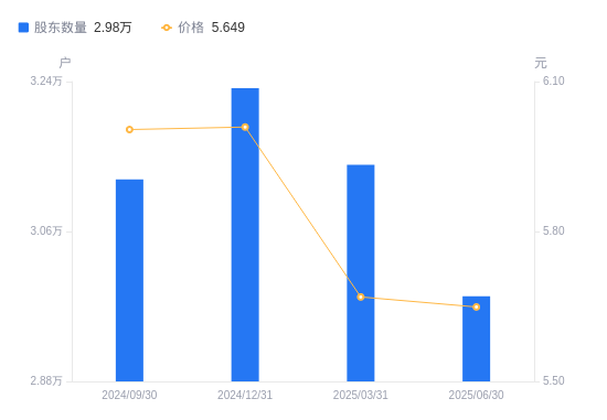 近一年(2024年6月30日至2025年6月30日),重庆燃气A股股东户数从3.11万户,减低至2.98万户,降幅3.97%,区间股价上涨5.91%。