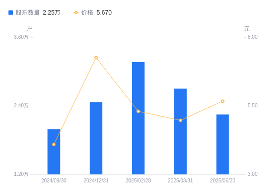 近一年(2024年6月30日至2025年6月30日),锦和商管A股股东户数从2.07万户,增加至2.25万户,增幅8.41%,区间股价上涨59.72%。