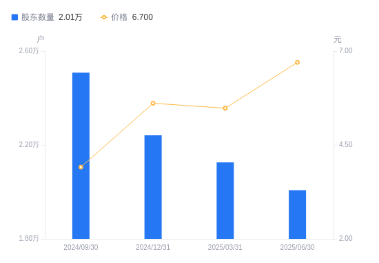近一年(2024年6月30日至2025年6月30日),ST数源A股股东户数从2.59万户,减低至2.01万户,降幅22.49%,区间股价上涨108.07%。