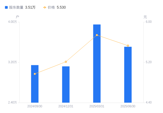 近一年(2024年6月30日至2025年6月30日),创力集团A股股东户数从3.16万户,增加至3.51万户,增幅10.85%,区间股价上涨26.83%。