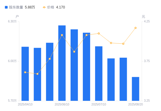 近一年(2024年8月20日至2025年8月20日),劲嘉股份A股股东户数从6.56万户,减低至5.88万户,降幅10.38%,区间股价上涨16.48%。