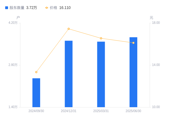 近一年(2024年6月30日至2025年6月30日),麦克奥迪A股股东户数从2.05万户,增加至3.72万户,增幅81.65%,区间股价上涨89.31%。