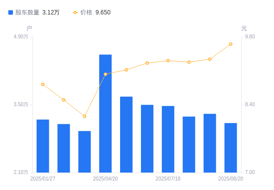 近一年(2024年9月30日至2025年8月20日),三态股份A股股东户数从2.71万户,增加至3.12万户,增幅15.36%,区间股价上涨17.83%。